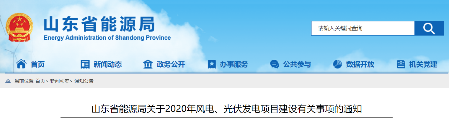 山東省能源局關(guān)于2020年風(fēng)電、光伏發(fā)電項目建設(shè)有關(guān)事項的通知