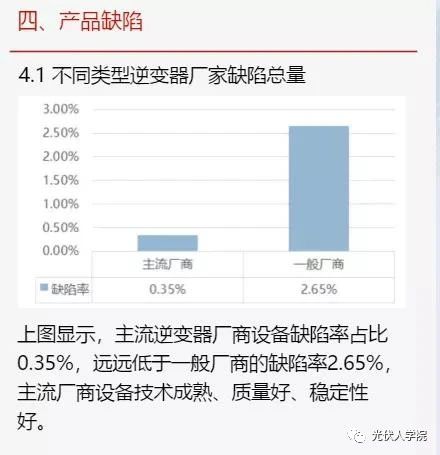 同時,調(diào)查顯示主流逆變器廠商的設(shè)備缺陷率占比為0.35%,要遠(yuǎn)遠(yuǎn)低于一般廠商的缺陷率2.65%。主流逆變器廠商的設(shè)備更為可靠。而自動化設(shè)備缺陷造成故障(事故或者考核)的占比最高,高達(dá)81.82%。