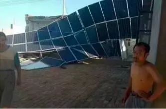據(jù)了解,當(dāng)天傍晚當(dāng)?shù)叵铝舜笱瑫r(shí)還伴隨著6-7級(jí)的大風(fēng)。光伏電站的主體結(jié)構(gòu)沒有發(fā)生變形,但頂部的幾塊光伏組件已經(jīng)被風(fēng)吹了下來(lái)。