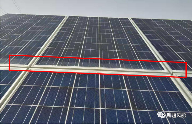 于田電站附近大型重工業(yè)工廠較少,無大量排放的酸堿性煙霧及油性氣體。主要是沙塵較多,因此下邊框處存在的牢固性粘貼物以積沙為主,主要泛白色,只要及時清洗,此類彩虹紋對組件的影響有限。