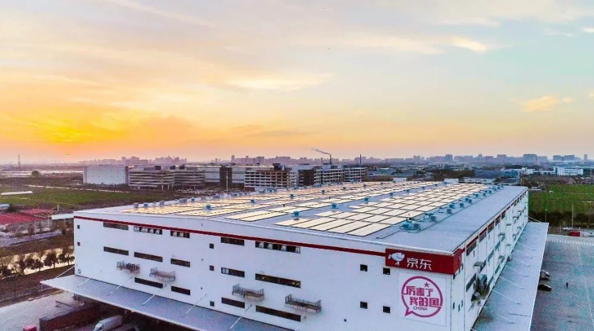 2018年6月7日,京東上海亞洲一號智慧物流中心屋頂分布式光伏發(fā)電系統(tǒng)正式并網(wǎng)發(fā)電,該系統(tǒng)可以為倉內(nèi)的自動立體倉庫、智能機器人以及自動化分揀系統(tǒng)供應清潔能源。