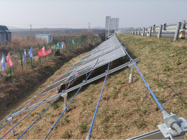 在上述政策背景下,2021年11-12月山東高速集團(tuán)在榮烏高速威海段建設(shè)了邊坡光伏發(fā)電試驗(yàn)項(xiàng)目并成功并網(wǎng)。