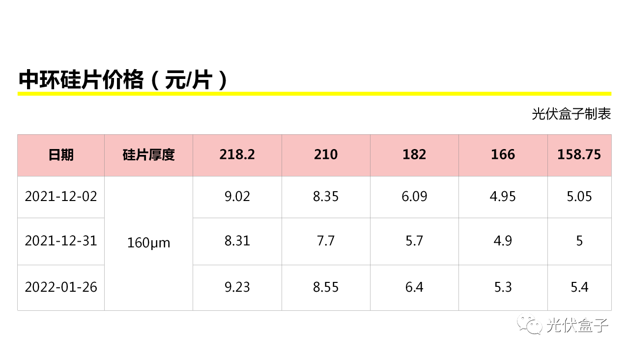 2022年1月26日,中環(huán)股份公布了最新的硅片價(jià)格。
