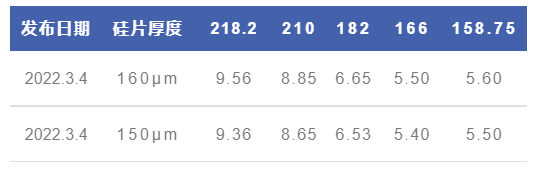 3月4日,中環(huán)股份上調(diào)硅片價(jià)格,對標(biāo)此前1月26日的厚度160微米硅片價(jià)格,G1硅片上漲0.2元/片,報(bào)價(jià)5.6元/片,漲幅3.7%;M6硅片上漲0.2元/片,報(bào)價(jià)5.5元/片,漲幅3.8%;M10硅片(160μm)上漲0.25元/片,報(bào)價(jià)6.65元/片,漲幅高達(dá)3.9%;G12硅片(160μm)上漲0.3元/片,報(bào)價(jià)8.85元/片,漲幅3.5%;218硅片(160μm)上漲0.33元/片,報(bào)價(jià)9.56元/片,漲幅3.6%。