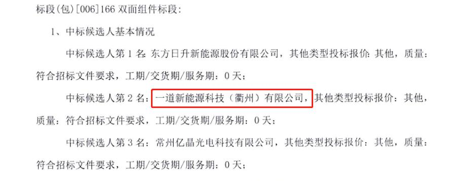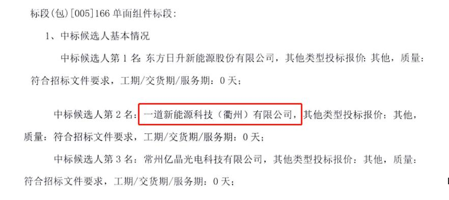 近日,三峽智慧能源有限責(zé)任公司2022年度800MW光伏組件供應(yīng)商入圍項(xiàng)目進(jìn)行了中標(biāo)候選人公示,一道新能源科技(衢州)有限公司(下稱“一道新能”)成功以中標(biāo)候選人第1名的身份入圍。