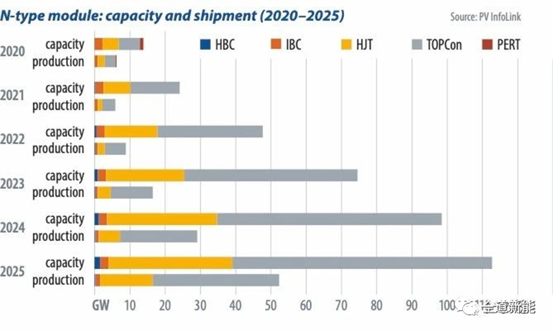 較高溢價(jià)下,光伏電站也對(duì)N型組件顯示出極高的接受度。PV InfoLink預(yù)計(jì),未來(lái)幾年N型組件產(chǎn)能與出貨量將保持高速增長(zhǎng),勢(shì)不可擋。