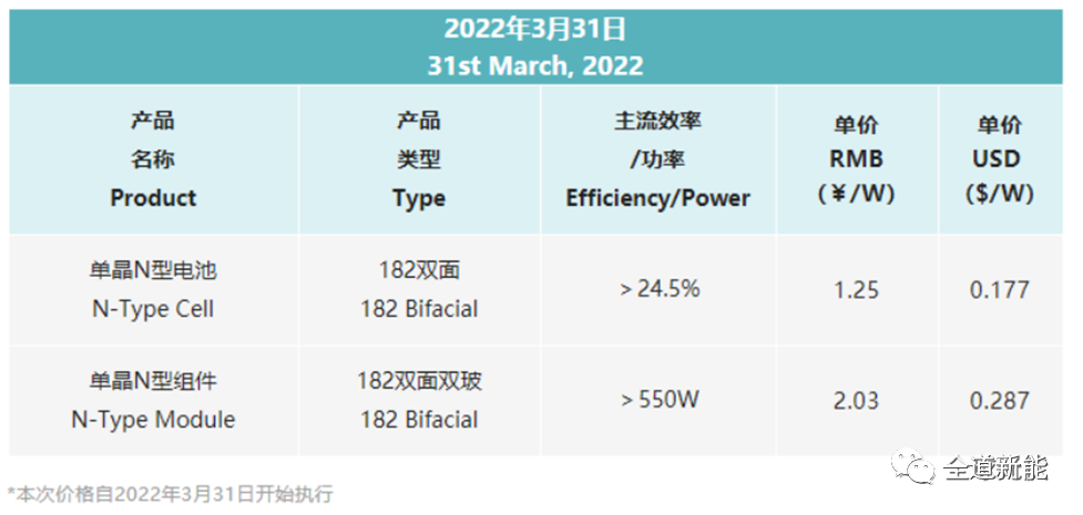 根據(jù)一道新能最新發(fā)布的N型電池組件報(bào)價(jià)情況,大尺寸N型組件報(bào)價(jià)為2.03元/W。