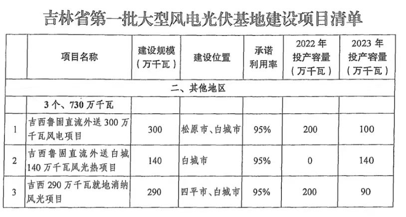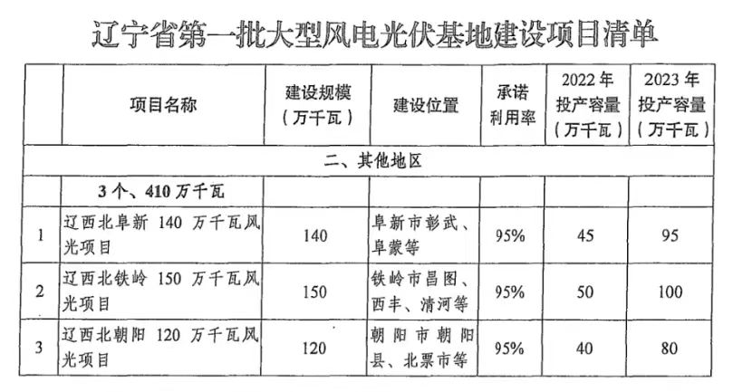 在第一批新能源大基地中,黑龍江、吉林、遼寧共14.2GW,占到97GW總規(guī)模的14.6%。
