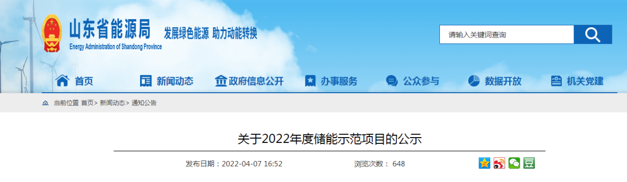 山東2022年度儲能示范項目名單公示!29項目超3.1GW!